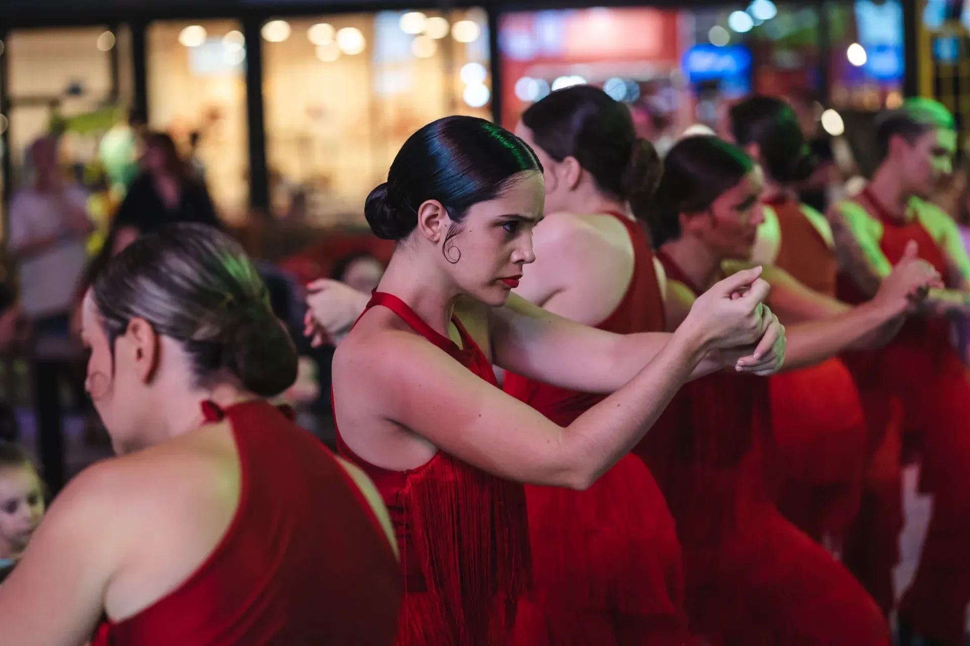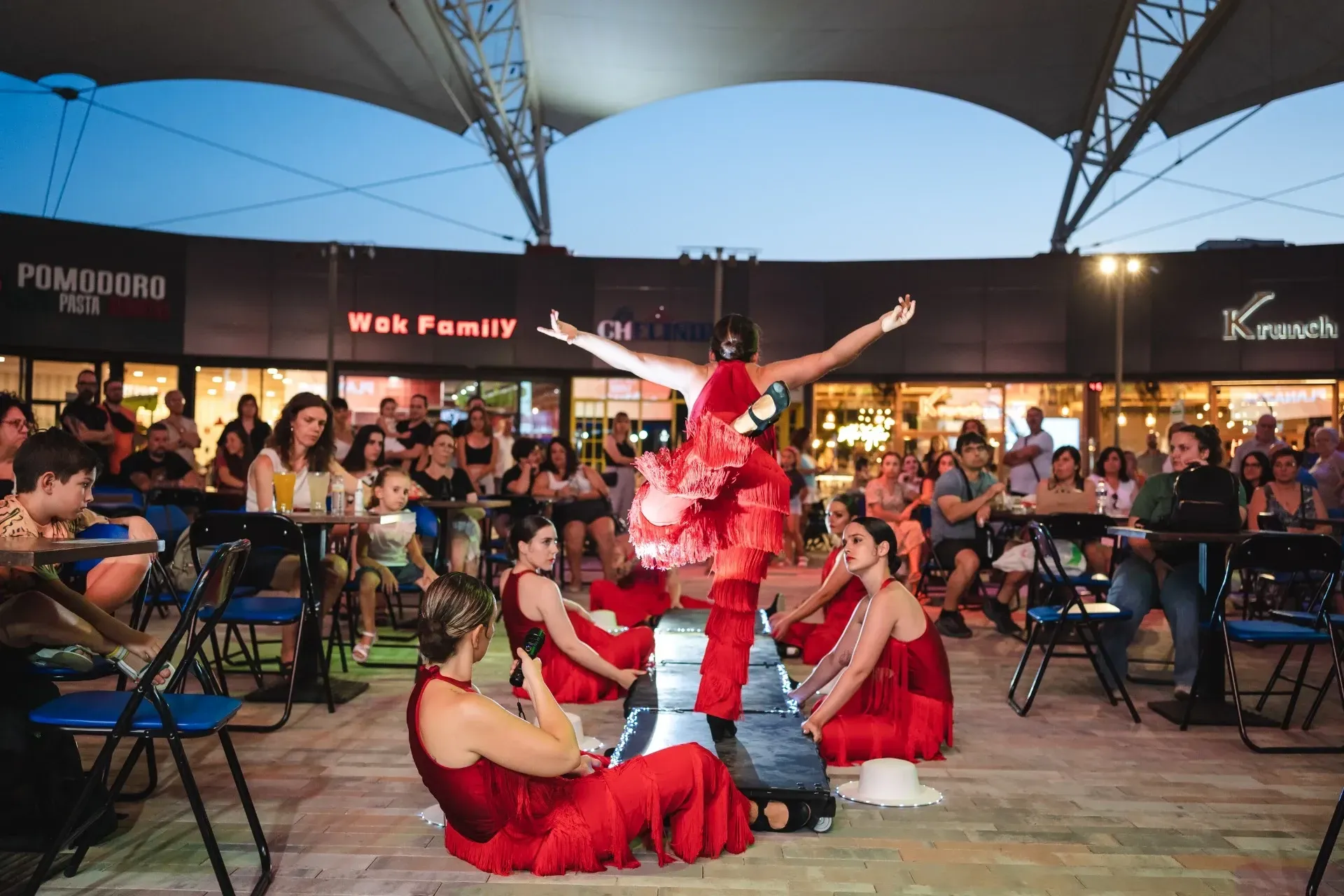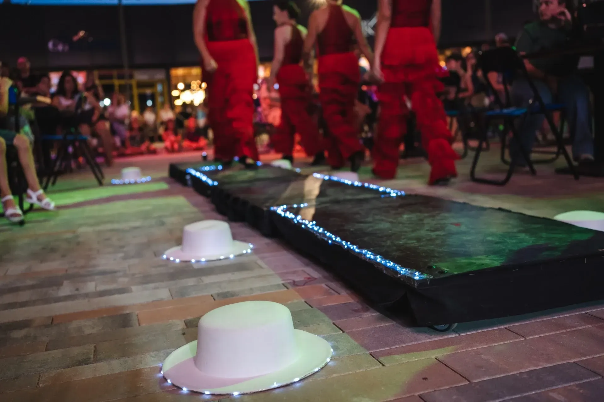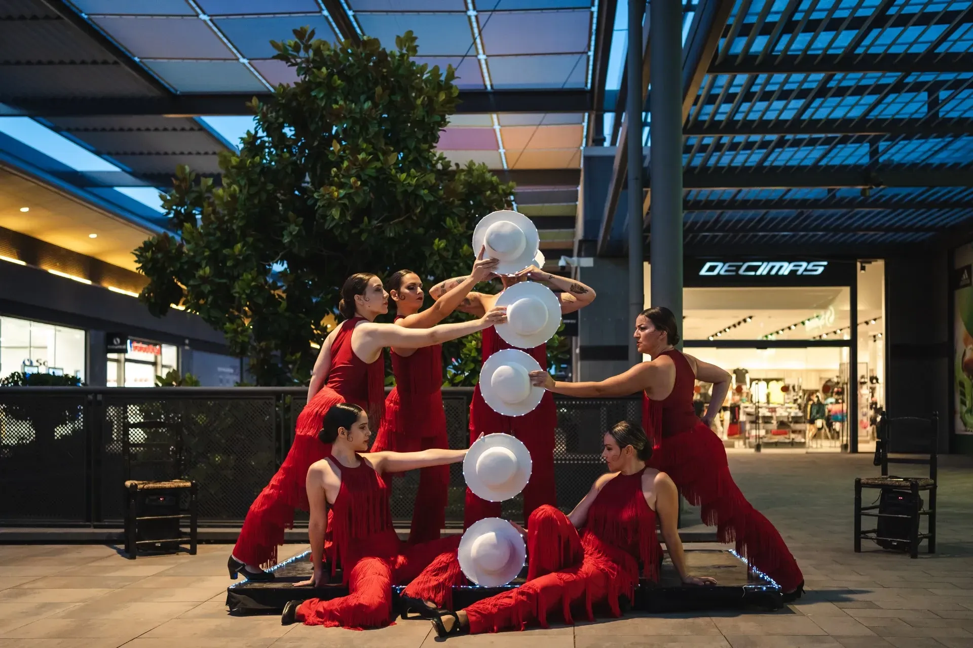 Espectáculo de danza, concebido para calle con música tradicional y electrónica con efecto visual muy impactante. 6 intérpretes componen y descomponen este espectáculo, con plataformas y sombreros luminosos, castañuelas luminosas, sonidos vanguardistas y danza impactante. Salen de lo convencional, unidas a la tradición. 30 minutos de performance de danza x danza, de flamenco de vanguardia, de modernización y energía a nuestro legado.